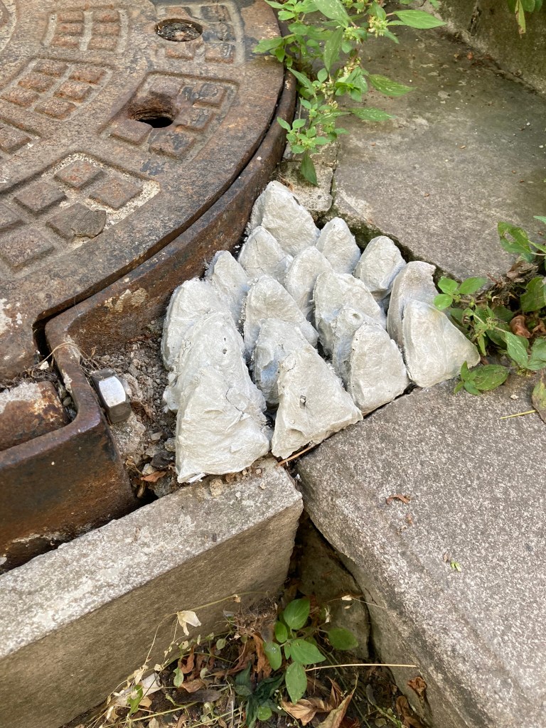 This body, whose scope is limited only by one’s imagination, nestles deep down, stretches out through the cracks of the pavement tiles, spreads into the voids of the urban surface, and gleams at nightfall. Where and when it will be visible again is unknown, it doesn’t have a map to locate its emergences. The city walker must come across the scales by change, and even then, the traces may remain unnoticed. Noticing the scales is a quest of tracing. First, a set catches an eye, then another bulk is recognized. This kind of act encourages the walker to find new traces in order to verify their suspicions.
