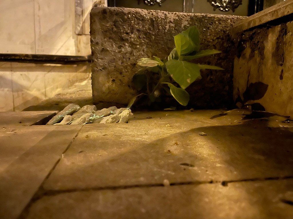 The work suggests a great body rooted under the city, especially the stairs of İstanbul, which have their own ecosystems. The elevation of the urban stairs creates a slower pace within the city, which allows cat communities and street plants to grow sturdy, suspend the pedestrians’ footsteps, taking smokers’ breaths away. Imagining an exceptional body living besides the everyday urban elements, hints at a yet unimagined environment enduring the never-ending constructions and demolitions of İstanbul’s capital politics. As Ancet writes, each being only looks “normal” in their own habitat, and if one comes across a figure that is “alien” or “monstrous” to them, that might be because they cannot imagine that body’s native atmosphere[1].